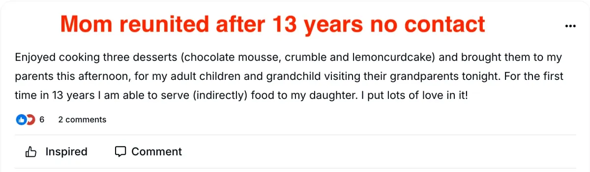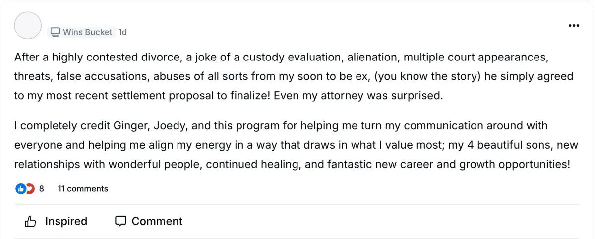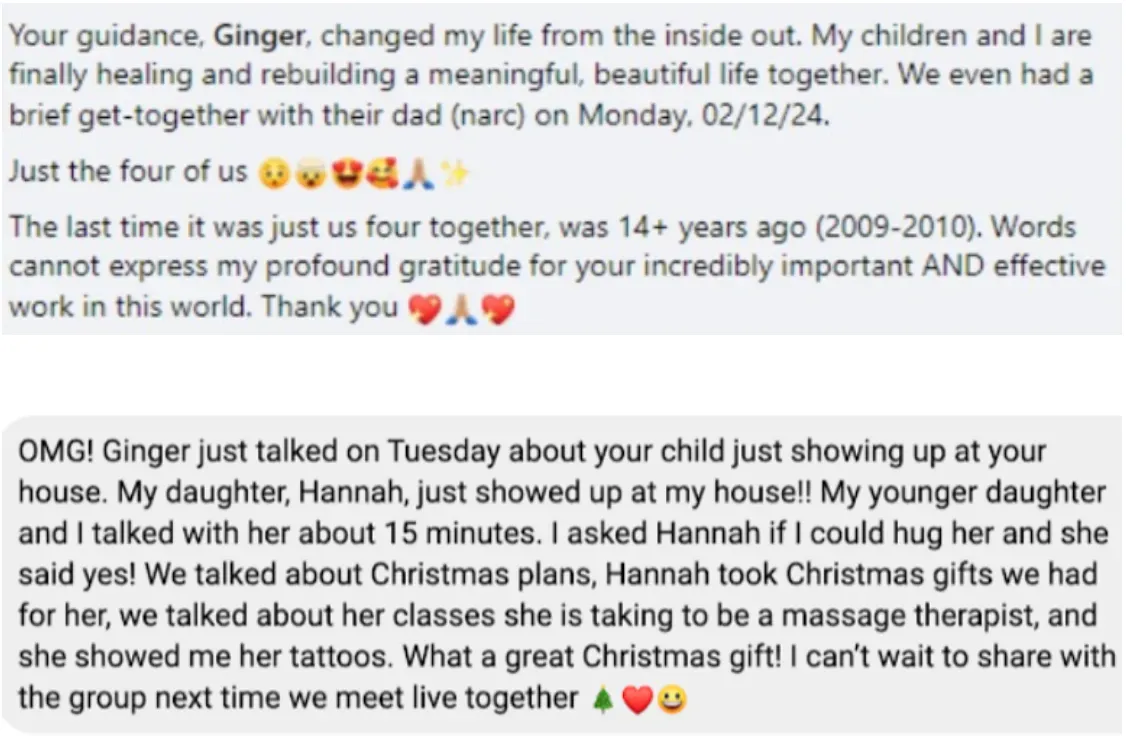 But it's not just be--I'll be hosting with special guests: other parents who reunited! And my team of coaches who also were alienated and now reunited.